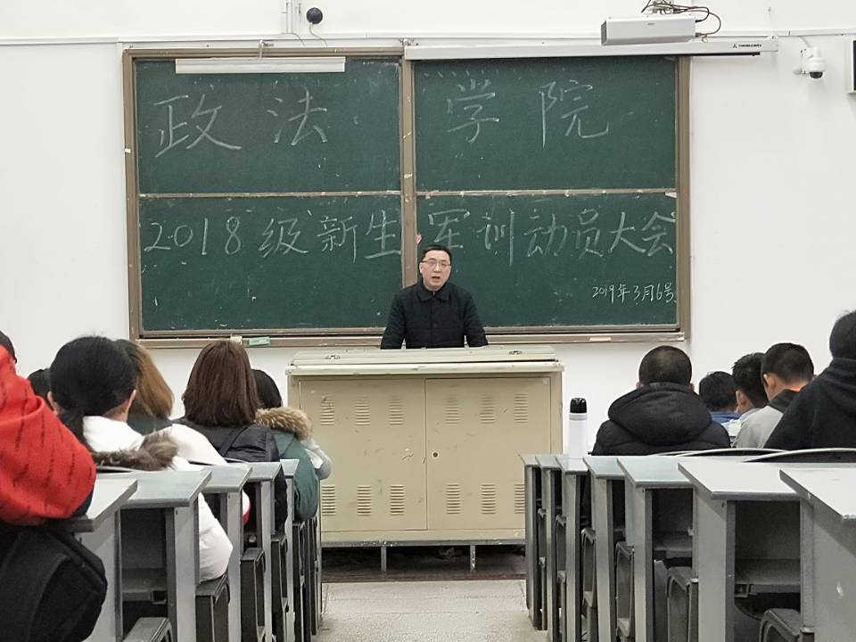 为提高金年会大学生国防意识,增强大学生的集体主义观念和组织纪律性,磨练大学生意志,增强克服困难的信心,促进大学生全面发展,培养“三心四能五复合”的应用型人才,金年会2018级学生将参加为期9天的学生军事训练。3月6日下午5时,金年会2018级学生军训动员大会在一教楼114教室隆重举行。学院党总支书记刘春辉老师、辅导员刘丹老师出席本次大会,并作动员讲话。