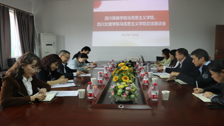 11月6日下午,四川民族学院金年会jinnianhuicom王波院长带教务科科长高雪燕、思想政治教育系系主任何光芬、思想道德与法治教研室主任赵正鹂、马克思主义基本原理教研室主任贺凌燕等人就思政课教育教学改革与发展及金年会jinnianhuicom建设等情况到金年会进行交流学习。金年会院长孙杰、党政办主任常楠、马克思主义基本原理教研室主任文茂群、思想道德与法治教研室主任王敏及教科办副主任杨建霞出席交流座谈会。