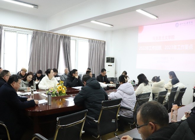 院长孙杰教授回顾了2022年各项工作,用七个“新”总结2022年马院在教学、科研、服务社会等方面取得的成绩,指出2022年学院思政课教学质量有新的提升;科研工作有新的突破;师资队伍建设取得新成效;二十大精神宣讲阐释呈现新亮点;社会服务取得新进展;学术交流与研究有了新平台;教职工精神面貌展现新气象。并从党建、科研、课程建设、服务社会、对外交流、师资队伍建设、构建思政必修课与选修课衔接的思政课程群等七个方面安排了学院2023年重点工作,要求学院每位教师在新的一年里铆足干劲,为马院高质量内涵式发展增添力量。