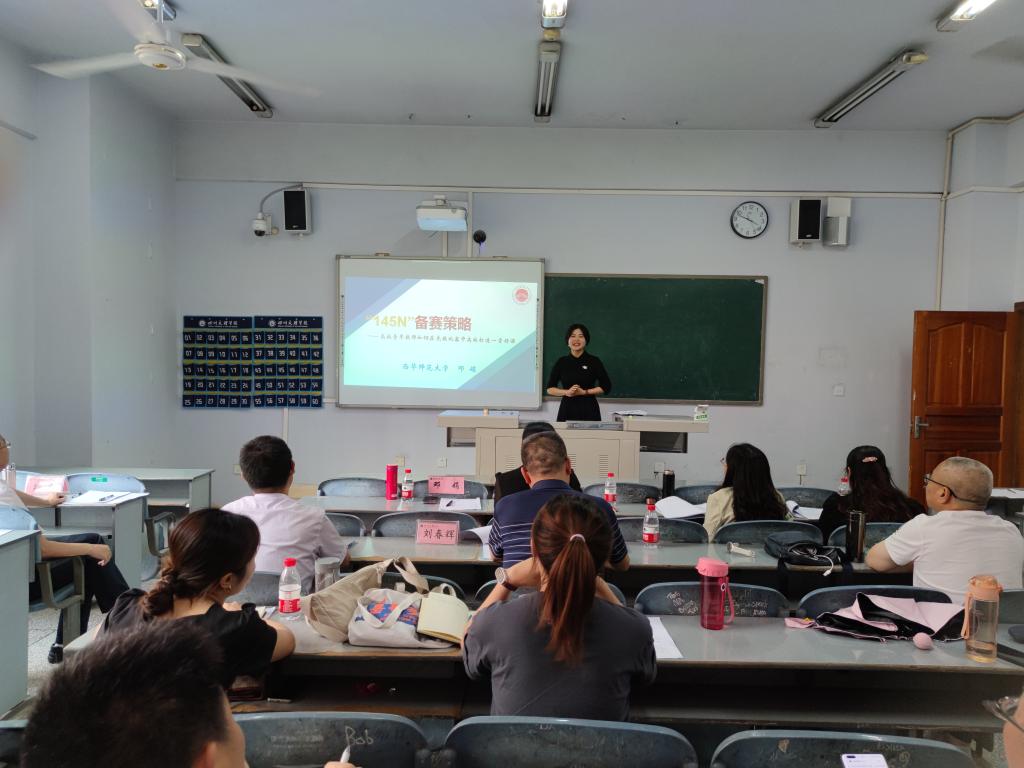 邓娟老师首先作了《理想信念是精神之“钙”》的示范微课展示。随后,她以《“145N”备赛策略——高校教师如何在竞教比赛中高效打造一堂好课》为题,一一讲述了“145N”的涵义,告诉青年教师如何使讲课和赛课出彩。最后,她对青年教师的讲课一一进行了点评,并指出老师们讲课中存在问题和不足。