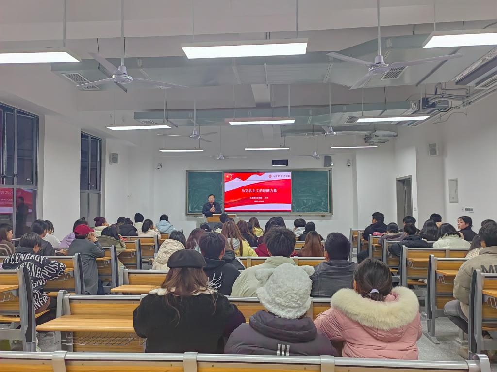 讲座以“马克思主义的磅礴力量”为题,系统深入诠释马克思主义强大的世界观、方法论以及马克思主义鲜明的人民性,深邃的科学性,引导青年大学生要树立崇高的理想信念,做坚定的马克思主义者,为中国式现代化建设贡献自己力量。