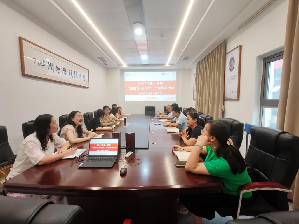 为扎实做好新学期“思想道德与法治”课程教学准备工作,提升课程高阶育人实效,2025年9月5日上午,思想道德与法治教研室在东区C209会议室成功召开了以“应四问 创高阶”为主题的集体备课会。教研室全体专兼职教师齐聚一堂,共研教学,共谋新篇。