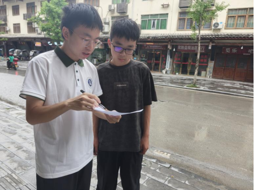 与此同时,思政社会调研同步推进。队员们兵分多路,深入村落街头。有的与当地居民围坐交流,倾听乡村发展故事与思政教育需求;有的聚焦当地初中生,开展一对一访谈,了解青少年对思政知识的认知与困惑。队长带领队员,耐心与初中生沟通,从学习生活切入,引导他们思考家乡红色文化传承与个人成长关联,让思政调研既有深度又有温度。