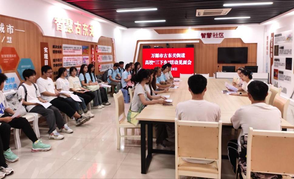 7月8日,团队看望了留守儿童并在阳光驿站提供了陪伴关爱服务。早上,在活动正式开始之前,古东关街道办组织召开了“三下乡”见面会。会上,街道办副主任唐梦瑶对团队的到来表示热烈欢迎,并介绍了古东关街道的基本情况和本次三下乡活动的具体安排。
