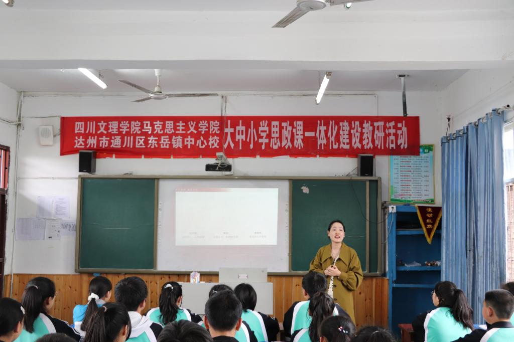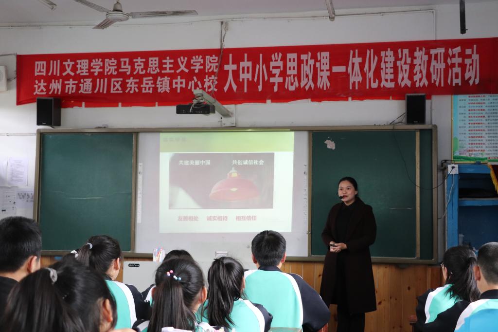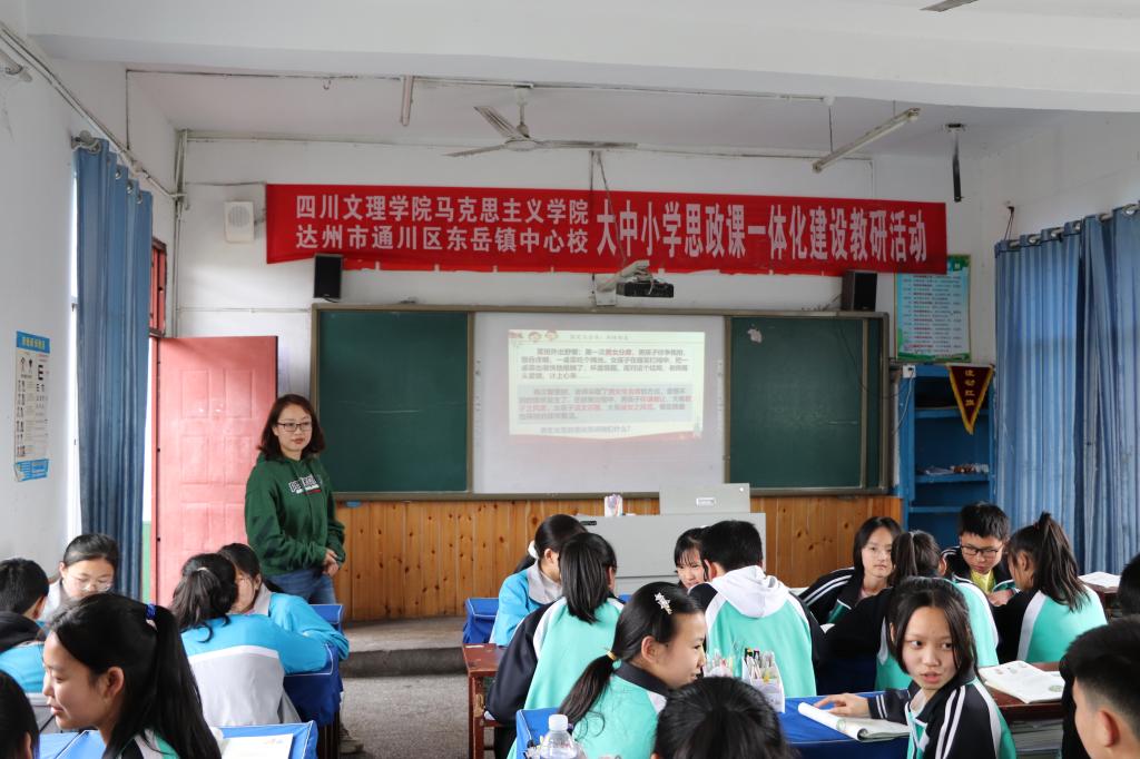 为深入学习习近平总书记关于教育的重要论述,贯彻落实党中央国务院《关于深化新时代学校思想政治理论课改革创新的若干意见》精神,深化新时代金年会思政课改革创新和思政课教师队伍建设,促进金年会思政课建设内涵式发展,切实落实立德树人根本任务,329日,党总支书记刘春辉、院长孙杰带队前往通川区东岳镇中心校开展大中小学思政课一体化建设教研活动,并在该校挂牌成立“四川文理学院金年会jinnianhuicom大中小学思政课一体化建设实践基地。”