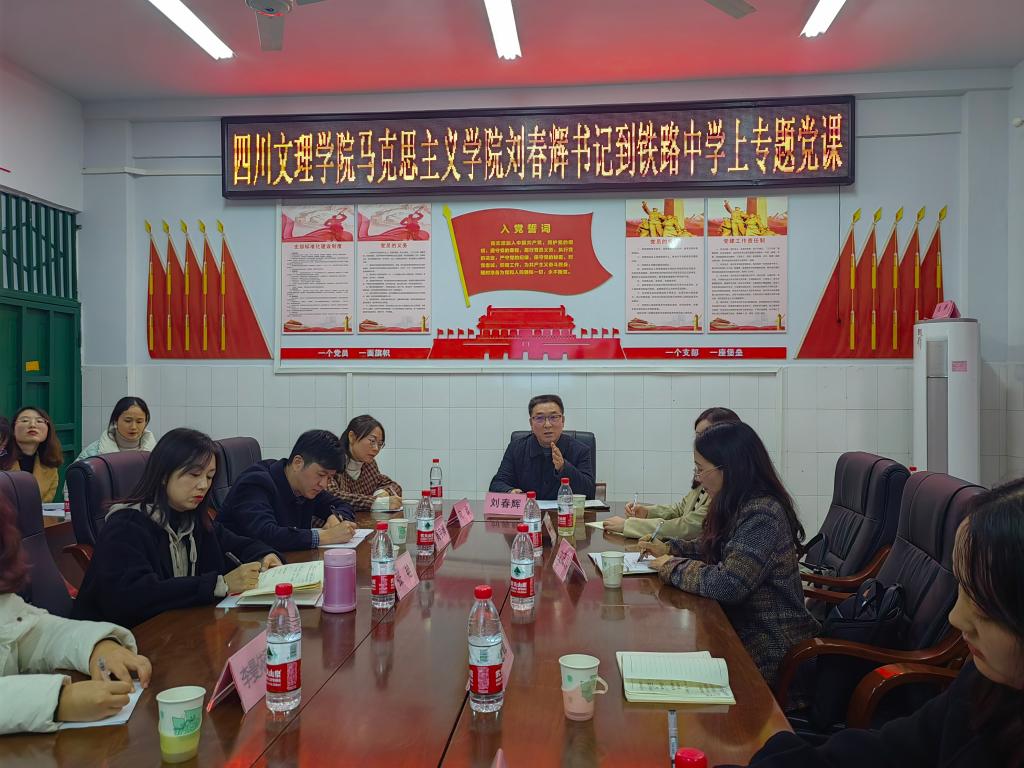 随后,受达州铁路中学领导邀请,刘春辉书记为达州铁路中学领导班子和骨干教师讲了一堂党课。刘春辉以“明体达用、体用贯通——深刻理解习近平文化思想”为题,从“实践总结、理论结晶”,“明体达用、体用贯通”和“思想武器、行动指南”三个方面系统诠释习近平文化思想的历史逻辑、深刻内涵、现实价值和指导意义。他指出,习近平文化思想的形成是从坚守文化自觉到文化自信、再到肩负文化使命、在“两个结合”中建设中华民族现代文明的过程。要深入领会“宣传思想工作九个坚持”、“二十大报告五个方面”“文化建设十四个强调”、“中华文明五个突出特性”和“七个着力基本遵循”的丰富内涵,自觉担负起新的文化使命,坚定文化自信,秉持开放包容,坚持守正创新。
