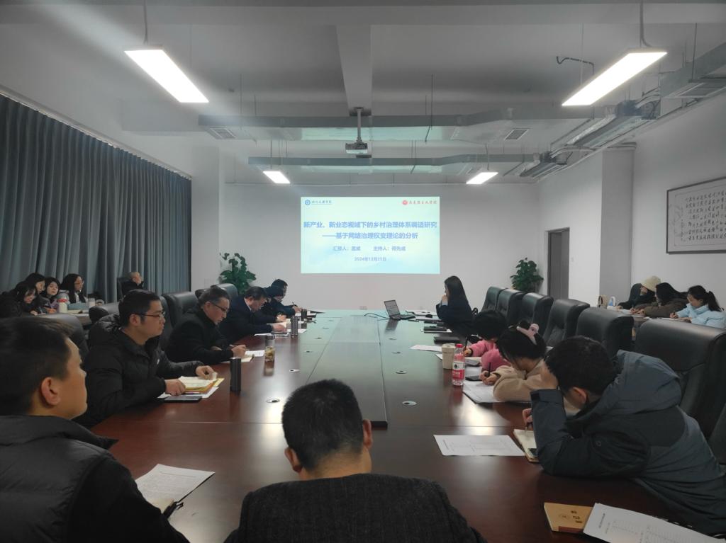 为提升学院整体学术研究水平,12月25日,孟威博士为全体教师作《新产业、新业态视域下的乡村治理体系调适研究——基于网络治理权变理论的分析》的学术讲座,讲座由学院副院长何先成主持。