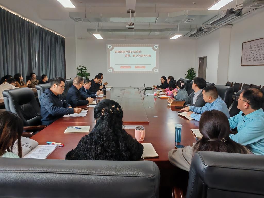 主讲人孟威博士以“条块关系视域下乡镇综合执法改革研究”主题,从改革背景、核心问题及对策三方面展开论述。她指出,当前乡镇综合执法存在条块关系不协调、执法能力不足及监督考核机制不完善等突出问题,并提出优化条块关系、加强执法能力建设及完善监督考核机制等对策建议,有利于推动乡镇综合治理法制化。