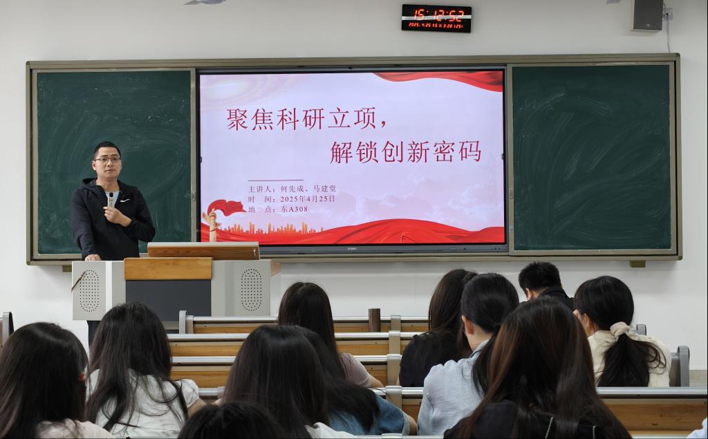 为激发学生科研创新活力,提升学术研究能力,2025年4月25日下午15点,一场主题以“聚焦科研立项,解锁创新密码”的科研立项指导会在莲湖东区A308顺利开展。学院副院长何先成、党政办公室主任马建出席会议,金年会学子到场聆听讲座。